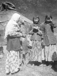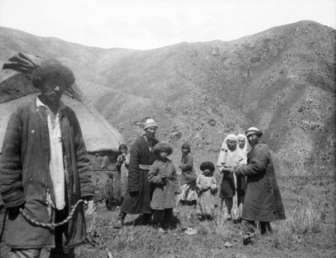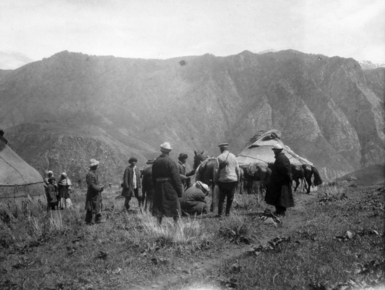 Kazak (Qazaq) camp near mouth of Koksu (Kok-su); several pe…