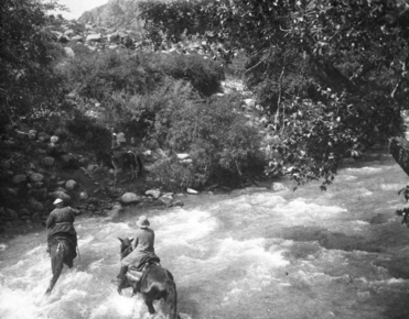 Kazak (Qazaq) group near mouth of Koksu, inspecting hoof of…