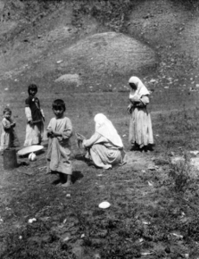 Kazak (Qazaq) women and children cooking hole, Koksu (Kok-s…