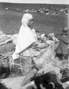 Kazak (Q) woman, first encampment; close up of woman sittin…