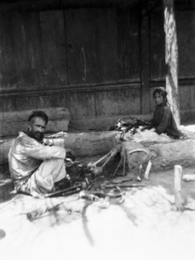 Blacksmith girl working bellows, South Road; A Turki (Uighu…