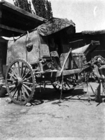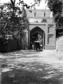 Kashgar gate; cart coming through very large elaborate gate…