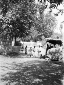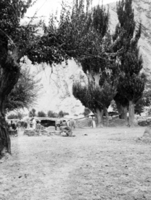 Sanju: oasis fields; view of field with large trees and low…