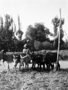 Sanju bazaar: donkey treading grains; 4 donkeys (and one ox…