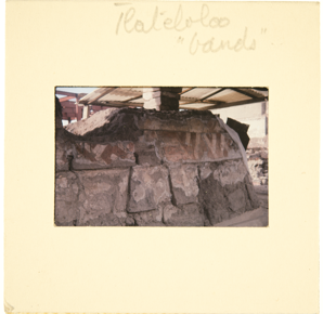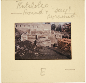 View of excavated ruins, including a round ‘shrine’ in a pl…