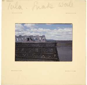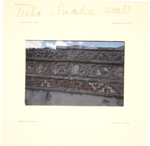 Close-up of the Wall of Snakes, called Coatepantli, showing…