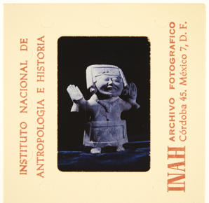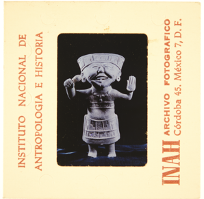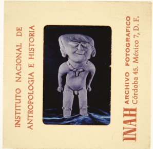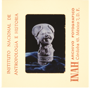 Documentary photograph of a ceramic smiling figure with the…