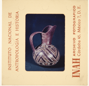 Documentary photograph of a polychrome jug with a wide-mout…