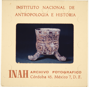 Documentary photograph of a polychrome vase with legs that …