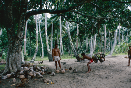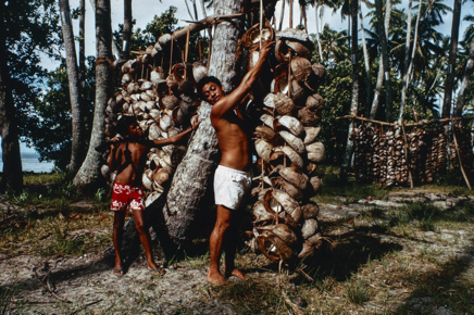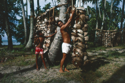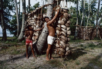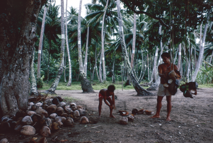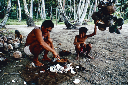 A portrait of Ro'o Tautoo and his son Eti making copra in R…