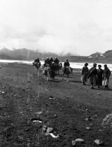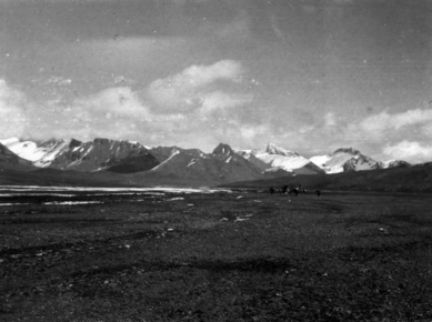 Kizil (Qizil) Tagh, meeting travelers; several men on horse…