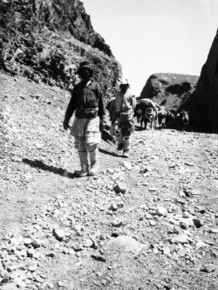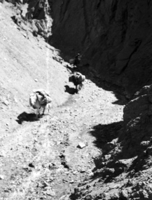 Our caravan: Rung Nullah; two men walking in the lead; load…