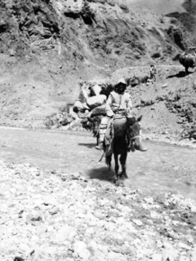 Fording stream below Rung Nullah; man on horse fording stre…