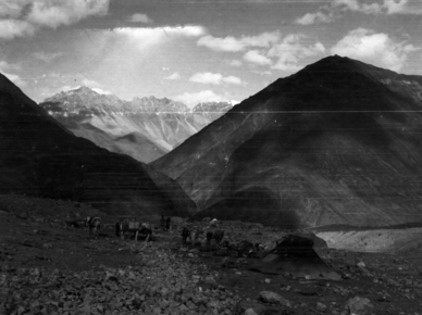 Depsang Plains, descending from; several loaded horses