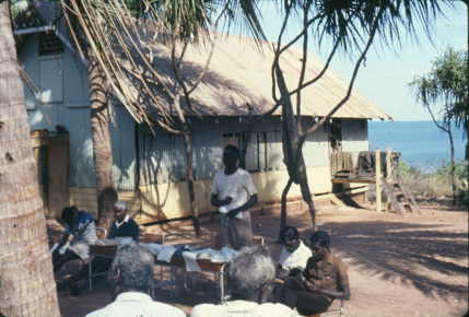 An Elder’s meeting outside the Methodist Church at Galiwin’…