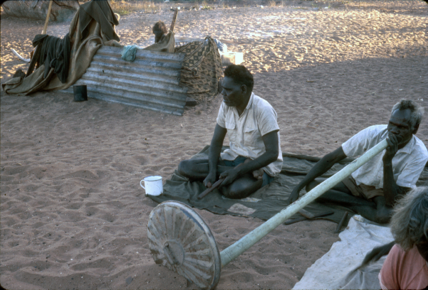 Two older Arnhem Land men, Barrurnur Wunungmurra playing a …