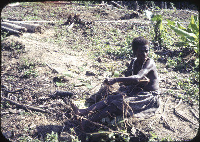 Woman plaiting string. [Information by Erna Lilje, JD 21/…