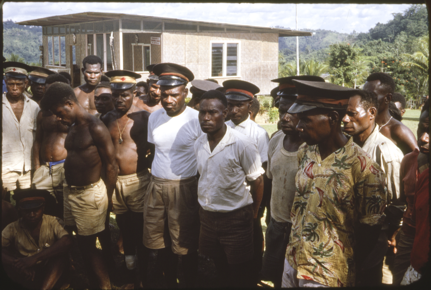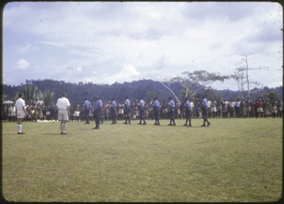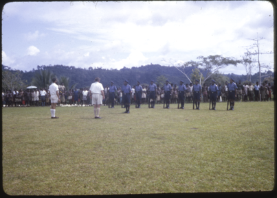 JK McCarthy inspecting a guard of policemen at Nuku airstri…