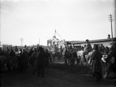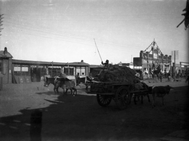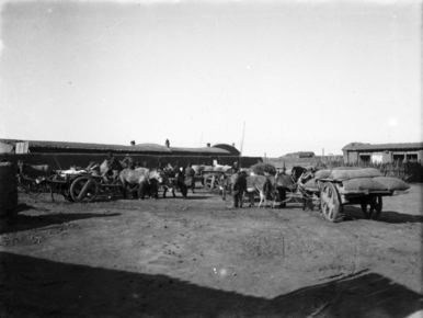 Paicheng-tze [Baicheng]: yard full of grain carts; Grain ga…