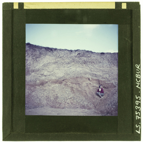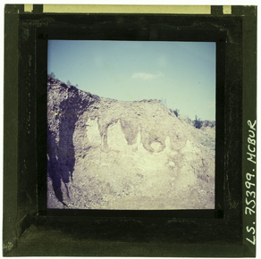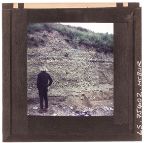 View of a cliff face, probably at the coast, showing differ…