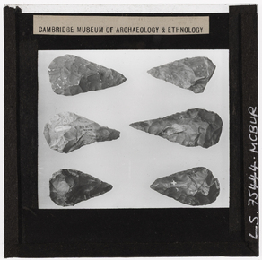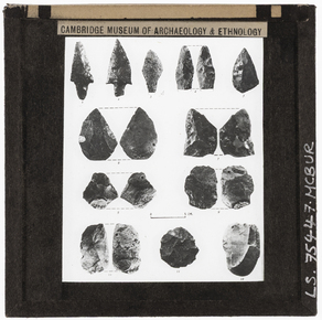 Documentary photograph of six worked stone tools from Hoxne…