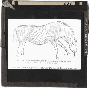 A drawing by H. Breuil of a Paleolithic horse engraving fou…