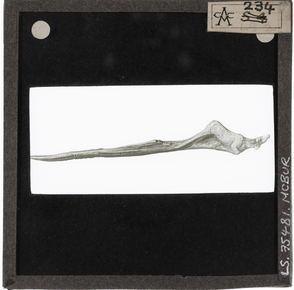 Drawing of a Upper Paleolithic bone spear-thrower with rein…