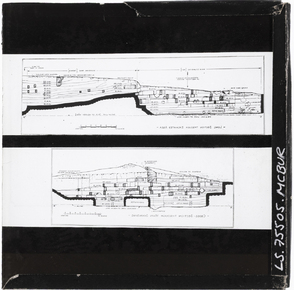 Two archaeological drawings: at the top, a long section thr…