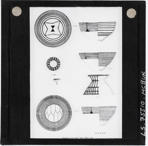 Documentary drawing of six pottery vessels of "Period I. Li…