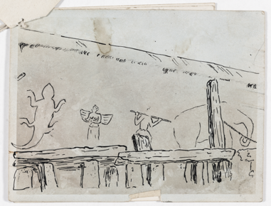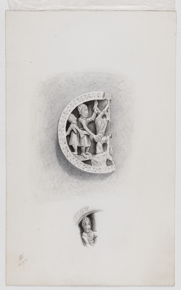 Pencil drawing of an incomplete walrus ivory draughts-piece…