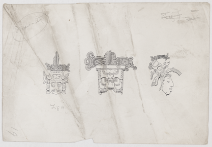 Three printed drawings of Maya glyphs or representations of…