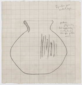 Pencil sketch on graph paper of a round pot with vertical l…