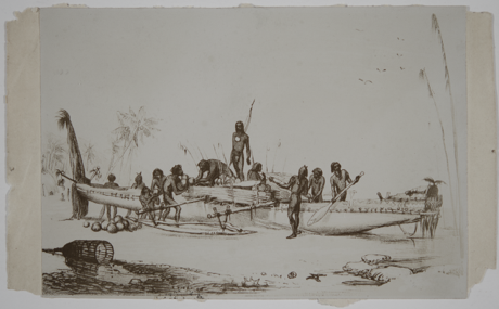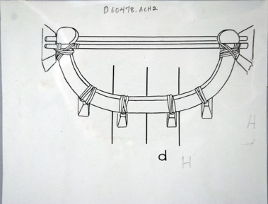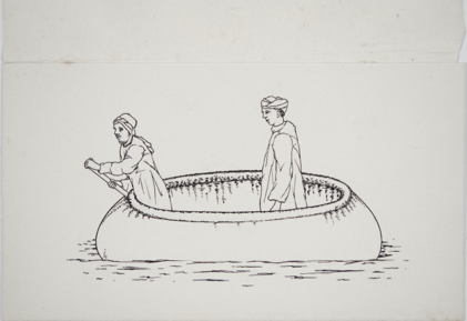 Drawing of the detail of a canoe.