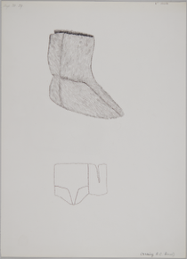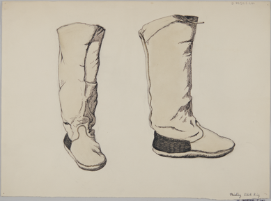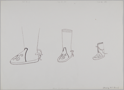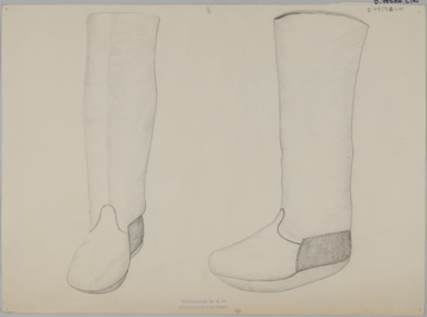 Pencil drawing of a pair of Evenki? long leather (possibly …