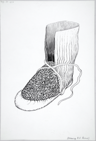 Pen and ink drawing of a pair of Evenki? long leather (poss…