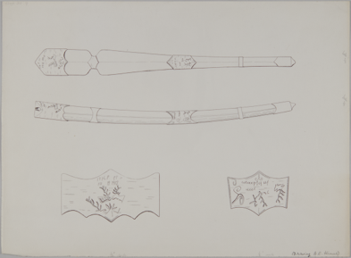 Four drawings of an Oräwun (Shaman's wapiti or elk call), c…