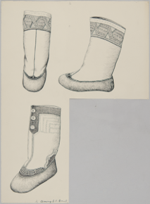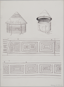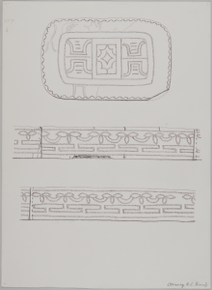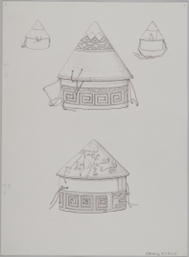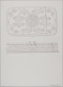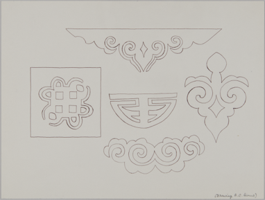Paintings and drawings of Mongolian artefacts.