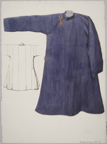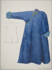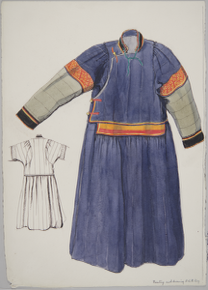 Watercolour painting and ink drawing of a Buryat woman's l…