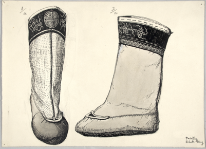 Paintings and drawings of Mongolian artefacts - leather qui…
