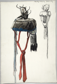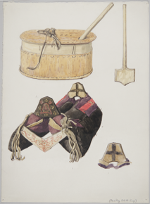 Painting and drawing of Mongolian artefact.