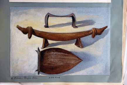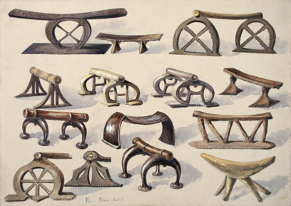 Documentary watercolour of two headrests from Cape of Good …