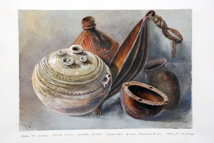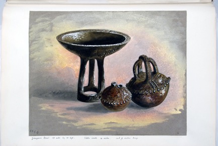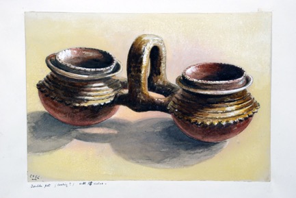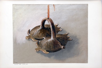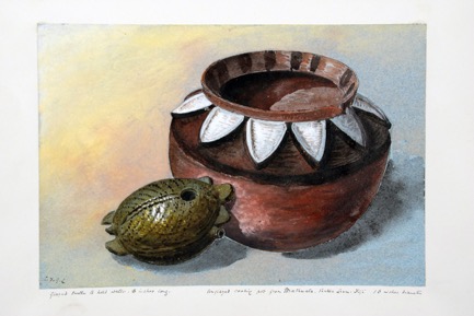 A watercolour of a "Glazed turtle to hold water. 8 inches l…